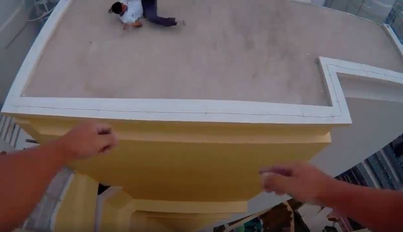 更在40层楼高天台间跳跃!且没有做任何保护措施!