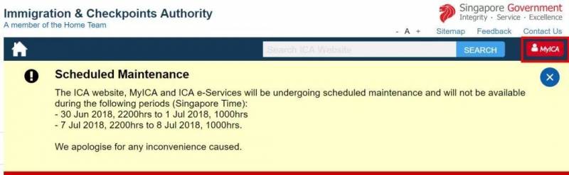 ICA网站、MyICA和ICA电子服务会进行定期维护,2018年7月7日晚上10点—2018年7月8日早上10点无法提供服务。