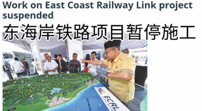 马来当局已在东海岸铁路上投入了200亿林吉特,准备重新磋商并调低成本后继续进行,而非取消。