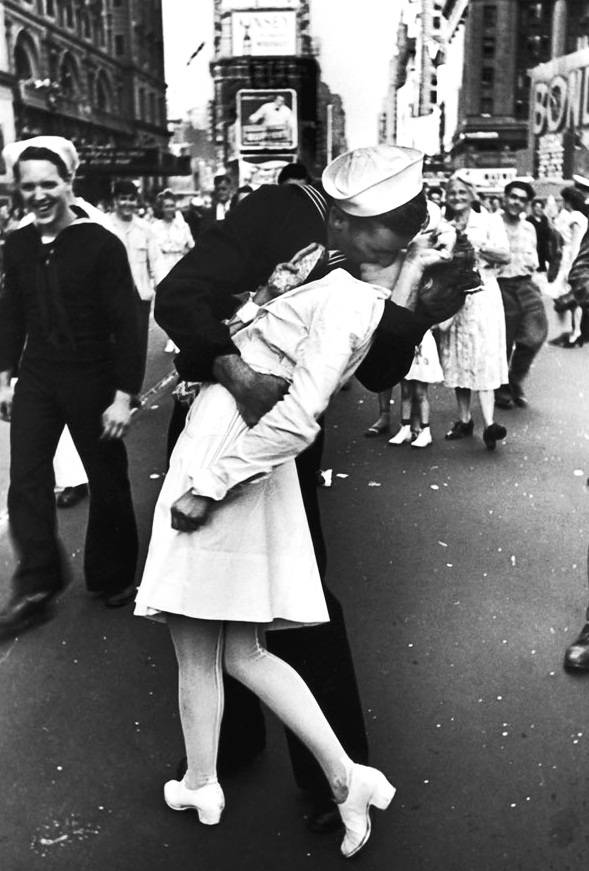 1945年8月,在纽约时代广场上,传来二次世界大战结束的这一刻,全民欣喜若狂。