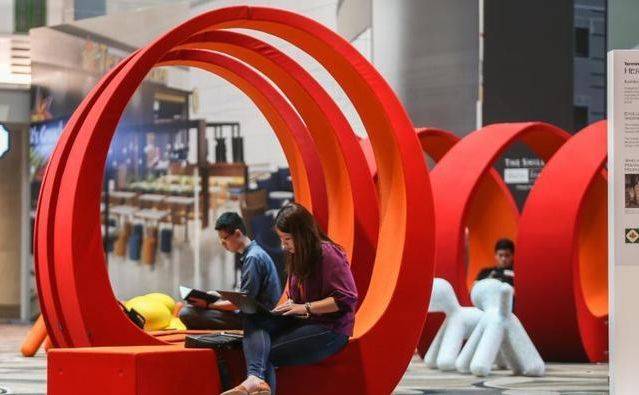 走累了,登机前可先坐下来歇歇脚,T4过境厅摆放了各种设计新颖的椅子,让访客可随时放慢脚步,坐下欣赏周围的艺术品。