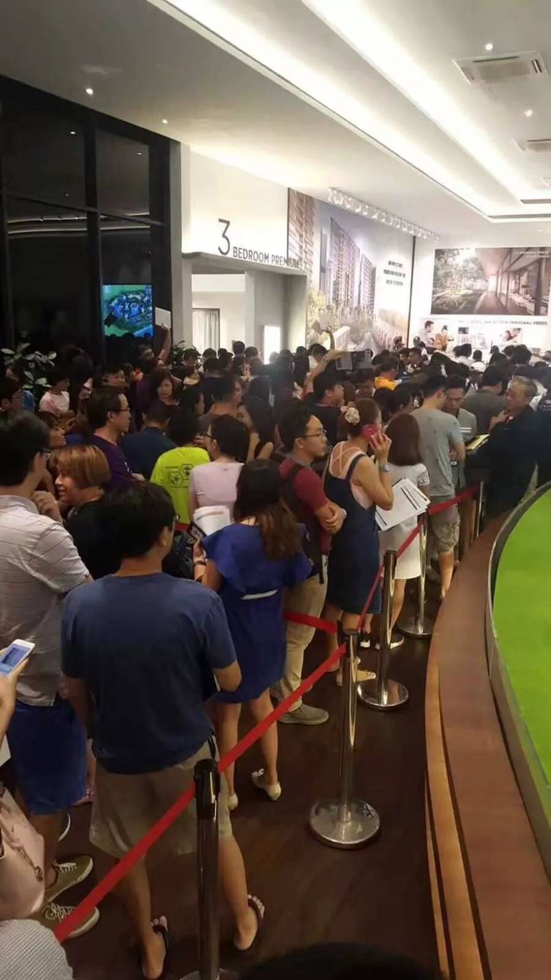 因为新政从今天零点起开始实施,所以很多售楼处出现了连夜排队抢房的局面。