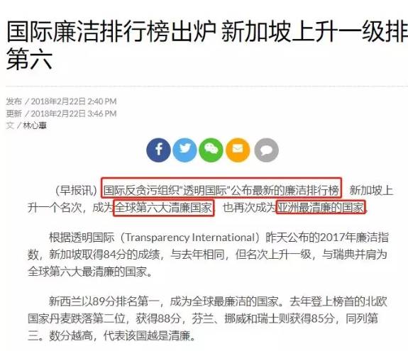 而且新加坡也是全亚洲廉洁度最高的国家!