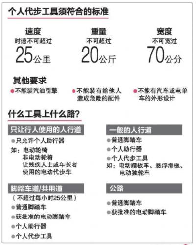根据活跃通勤法令,个人代步工具的重量不可超过20公斤,宽度不超过70厘米,或最高时速不超过25公里。