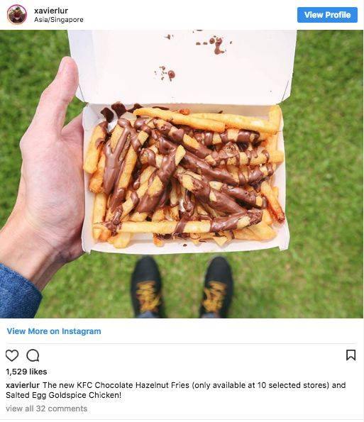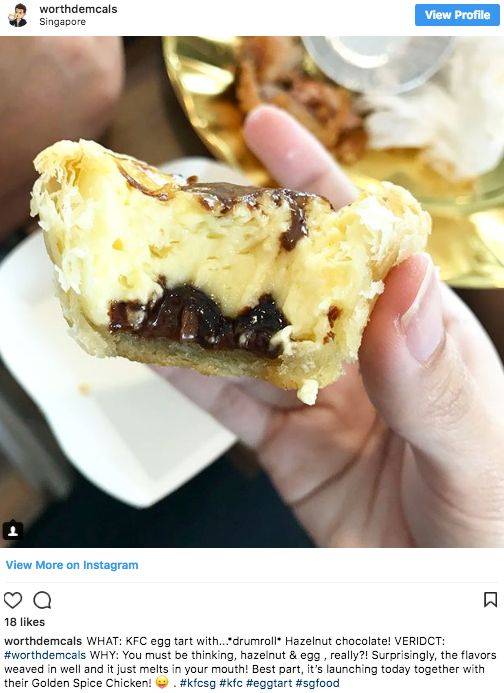 如果味蕾比较保守一点,那么你也能试试KFC的另外一个新产品:巧克力蛋挞。每一蛋挞销售$1.50哦!
