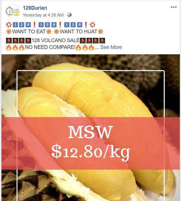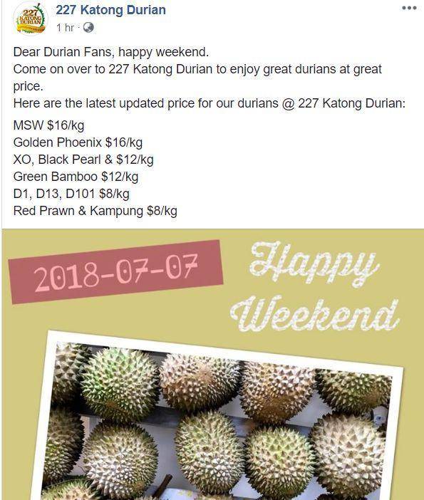 老板在Facebook上已经宣布啦~他们家的猫山王榴梿现在一千克只要12.8新元~