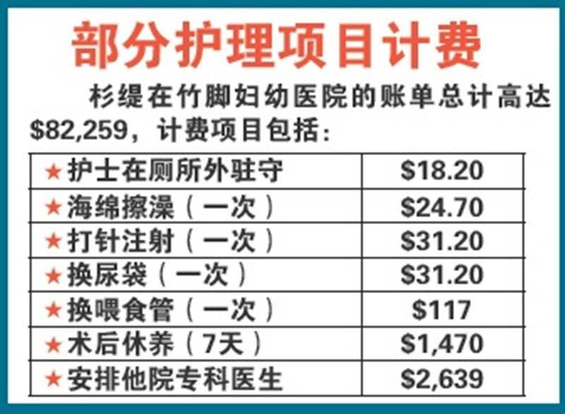 杉缇发现这一趟就医,足足花掉了八万多新币!其中额外的护理费就高达1万元!