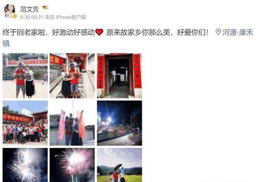 终于找到了自己的老家,而且经过血液的对比范文芳来自这里是没错的。村民们都热情的接待了她们一家人,还入了族谱。当时她发微博说到:终于回老家了,心情特别的激动。非常爱大家!