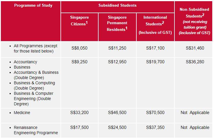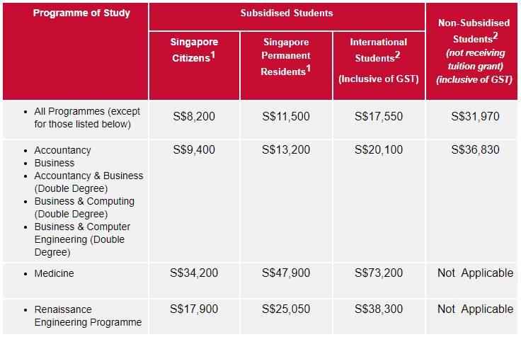NTU的学费似乎比NUS还要贵一丢丢