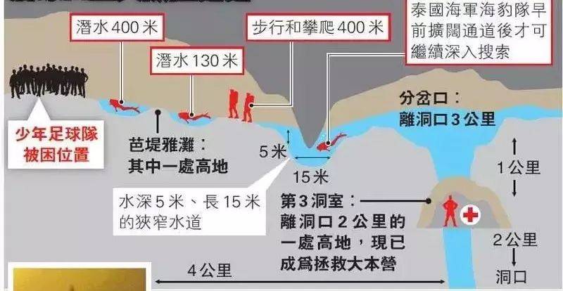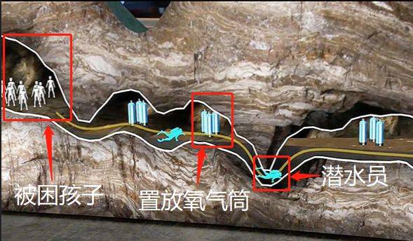等待被救的孩子们在洞穴接受了潜水训练,在逃生过程中,他们每人由世界级的外国潜水员与泰国海豹队员,以2人护送1人方式进行。