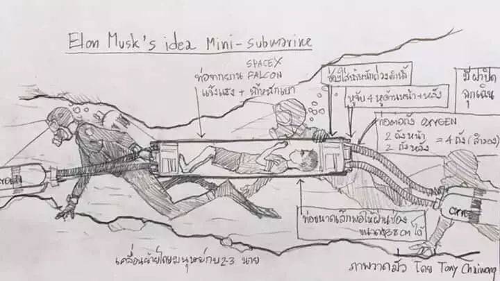 他的团队花了8小时特别制作了“迷你潜艇”,用火箭氧气输送管相同的材料制作,又轻又坚固。在洛杉矶泳池完成测试后,火速送往泰国。