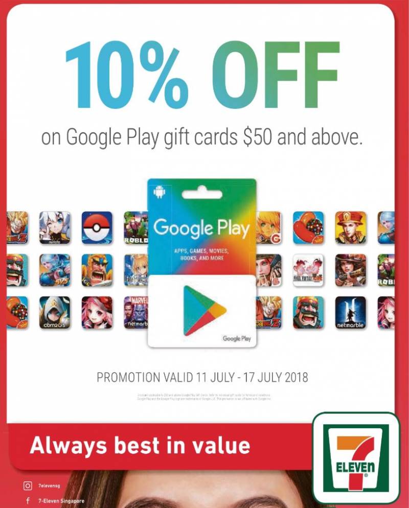 在全岛任意7-Eleven门店购买Google Play储值卡(面值50新币以上)