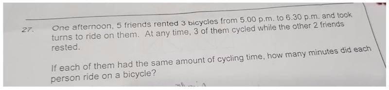 这道应用题大意为:五人某日相约去骑脚车,租了三辆脚车,从下午五时骑到六时半。