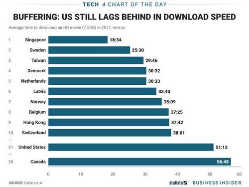 厉害了!新加坡宽带网速全球排名第一。