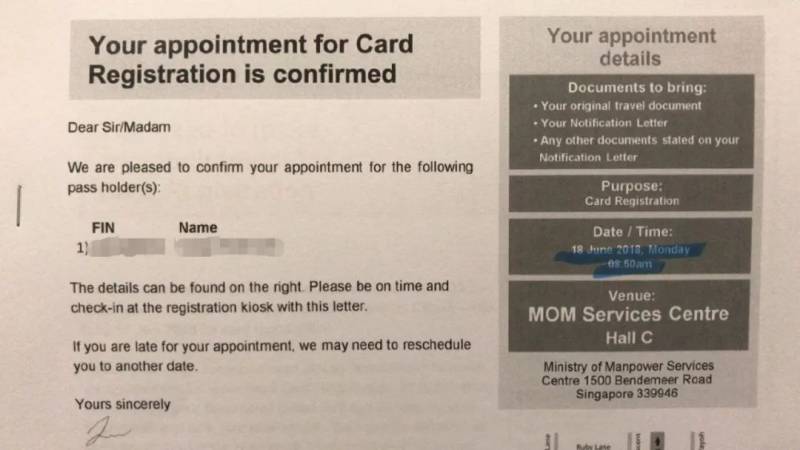 完成体检后,拿到检验报告才能到MOM网站预约领取WP卡。