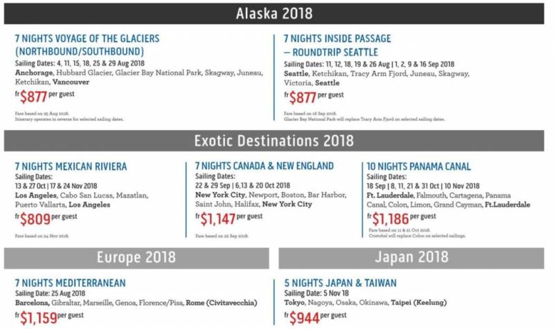 目前Princess Cruise放出了多条优惠航线