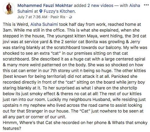 Fauzi也在文中透露,邻居与住在对面的侄子都到他家中寻找大猫,可是大猫已不见踪影…..