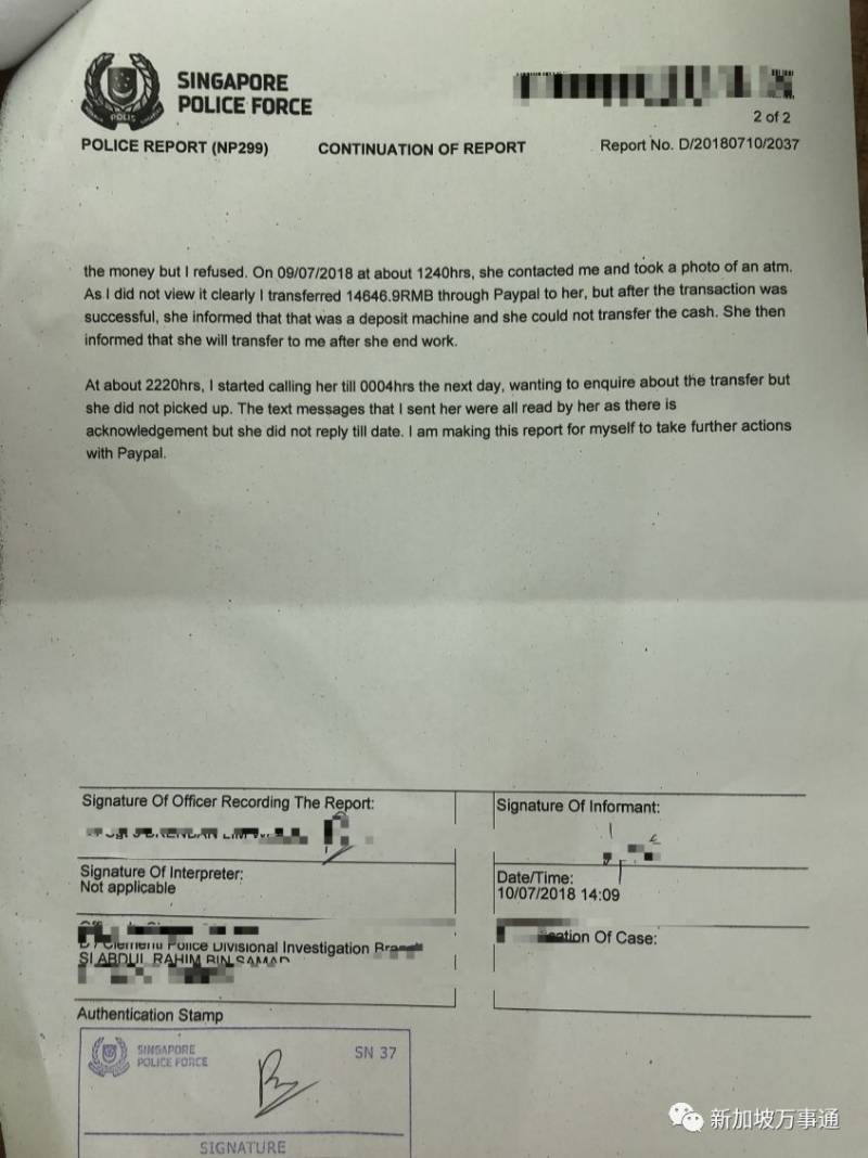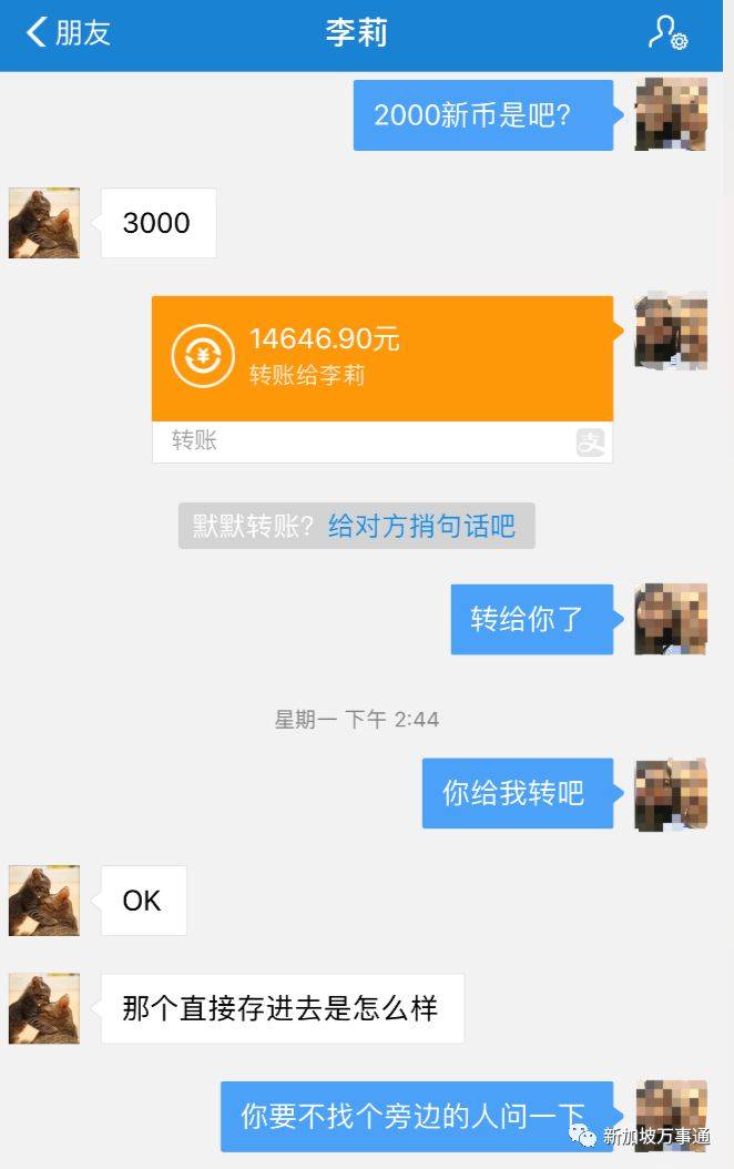因为我住得离乌节路远,就告诉她网上操作也是可以的,让她找个存款机,直接转钱到我账户就可以,她说她到了机器旁边,并且给我拍个照片。