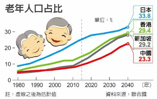 到时,居民的平均年龄将是52.8岁,只比日本稍微好一点,