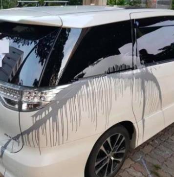 其中一名被泼漆车辆的受害者,清晨6时多下楼取车准备开车上班时,惊见车辆被泼漆,立刻拨电报警。