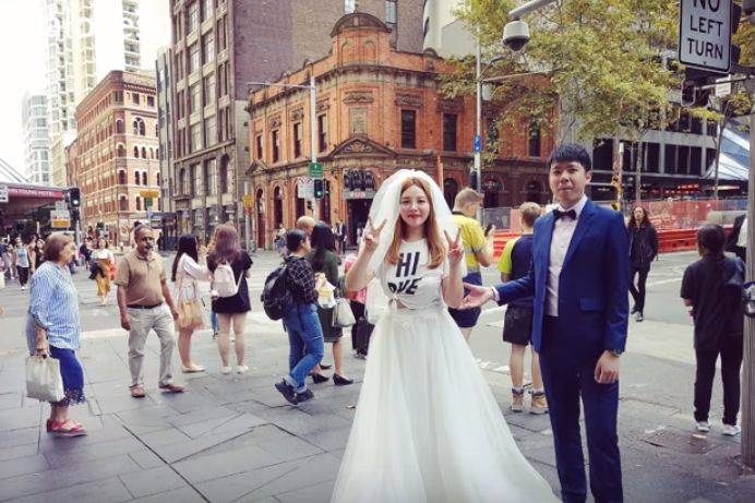 夫妇二人经常在网络上发放狗粮,并一起回澳洲拍了婚纱。新加坡网友为女孩勇敢的行为点赞。