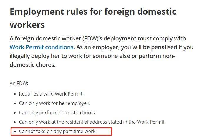 工作准证持有者应该从事特定的全职工作。他们不应该有时间在全职的工作之外,还能从事兼职工作。