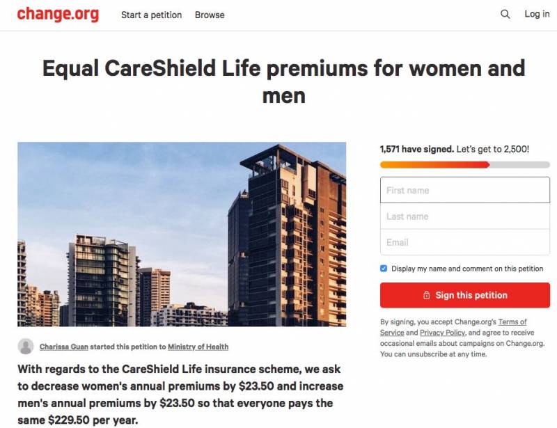 如果你也支持这样的想法,就登陆网站https://www.change.org/p/ministry-of-health-equal-careshield-life-premiums-for-women-and-men加入签名吧。
