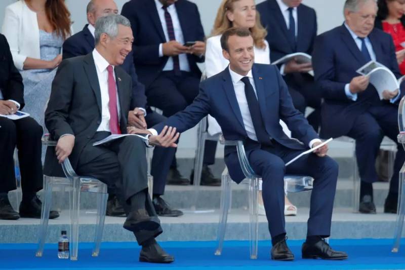 今天是法国的国庆日,李显龙总理访法第二日,他作为唯一特约受邀嘉宾和法国总统马克龙一起出席国庆游行典礼。