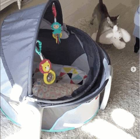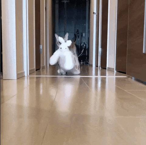 最后再到小主人面前大摇大摆示个威~娃娃我拿走啦,你自己躺那玩铃铛吧