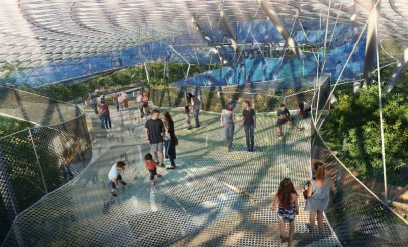 结合弹跳网和步行网的天空之网,让访客在离地面约25米的巨型网弹跳和行走。