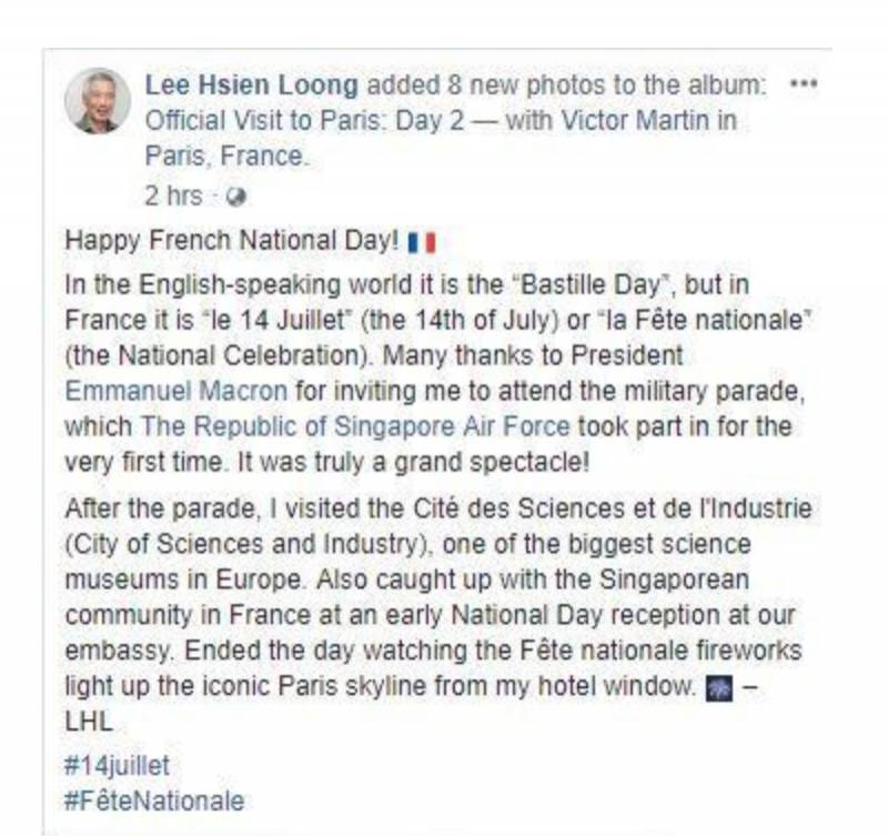 李显龙总理在7月13日抵达法国展开三天的正式访问。