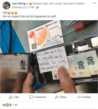 世界之大,真是无奇不有。手机店老板Iven Wong在Facebook分享他遇到的奇事,透露有顾客竟“送钱”要他别把手机修好。