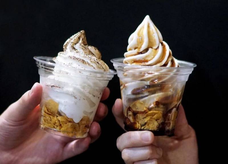 除了醋饮和甜甜圈之外,这里还有添加了黑醋的软雪糕。有两种口味:一种是日本玄米茶口味,一种是日本黑糖口味(S$3.9/4.5)