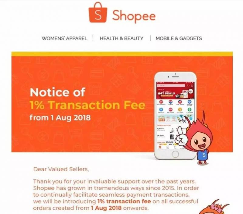 而这次,Shopee将对所有成功交易,向卖家征收1%的手续费!