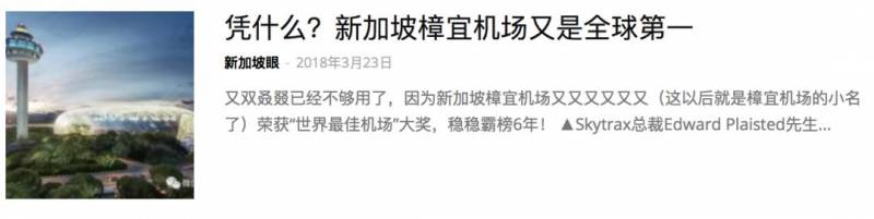 反观新航的“好兄弟”樟宜机场,却频频被Skytrax点名表扬,连续6年被封为世界最佳机场。