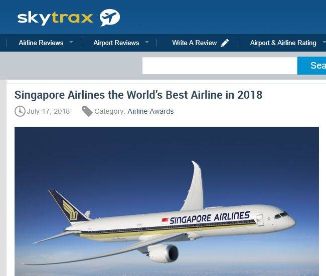今天,新航终于获得Skytrax的认可,荣登榜首,成为全球最佳航空公司!