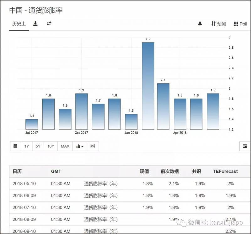 最后附上新加坡、中国的通货膨胀率,大家自行感受一下: