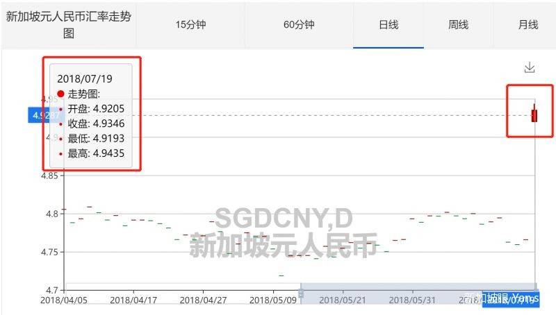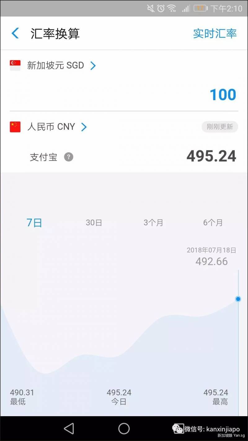 新币对人民币汇率,最近一直在4.7~—4.9~徘徊,今天猛然发现,直破4.94~,支付宝显示的汇率,更是突破4.95~在新加坡的一大半华人都会受到影响。