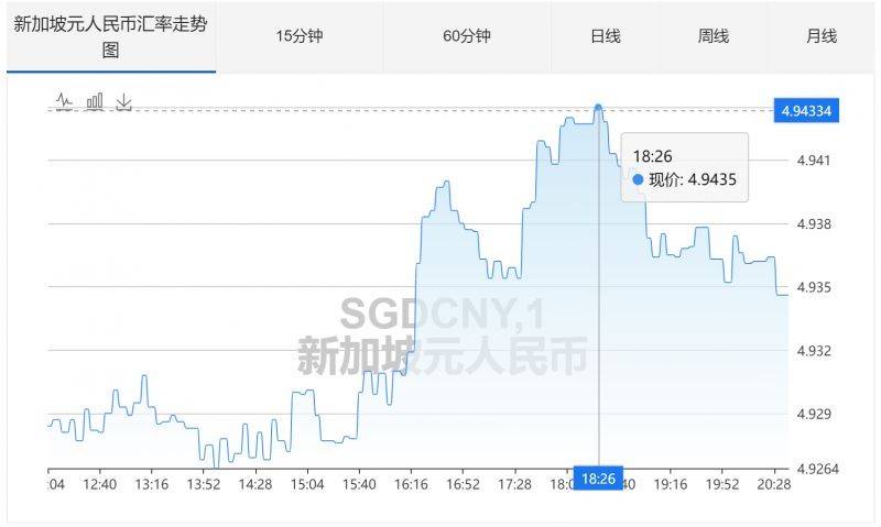 今日汇率最高,是在下午18:26点左右,突破4.9435。