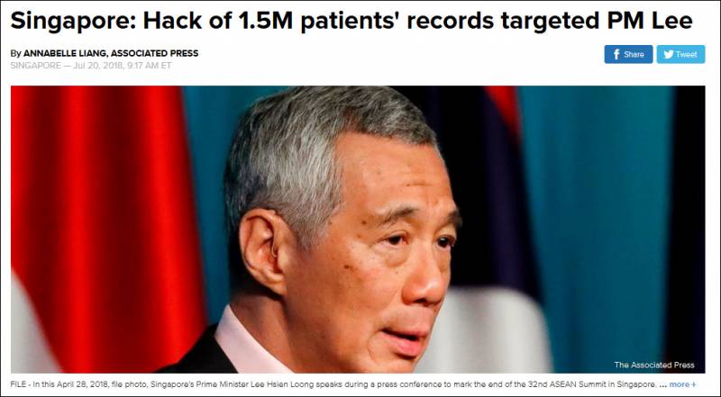 新加坡政府称:“调查结果证实,这是一次蓄意、有针对性和精心策划的网络攻击,而不是一般的黑客或犯罪组织所为。攻击者还特别针对总理李显龙,曾多次盗取其门诊配药信息。”