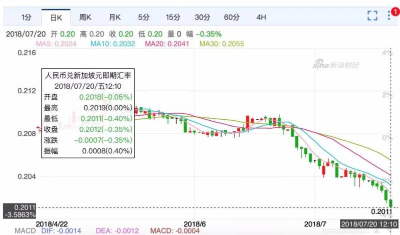 从这两天人民币兑新币的K线来看,跌的也是相当酸爽。