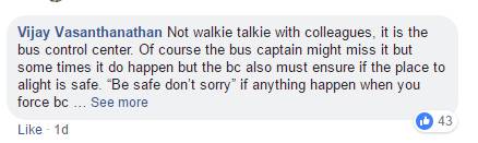 “他并不是和同事对讲,这个是车辆控制中心。当然,巴士车长可能是有过失了,但是在发生了这样的事情后必须确定,下车的位置是不是安全?毕竟,安全更重要,如果在你的追迫下停车,出了什么意外,巴士车长还是会被指责的。”
