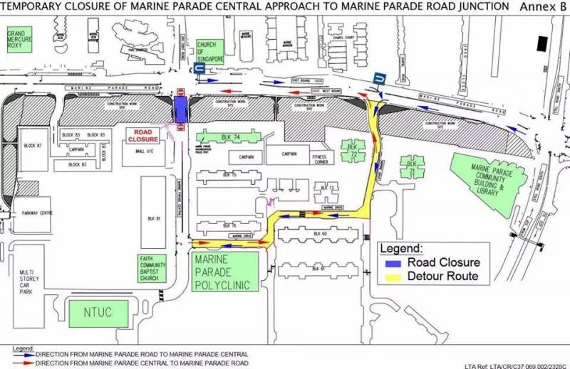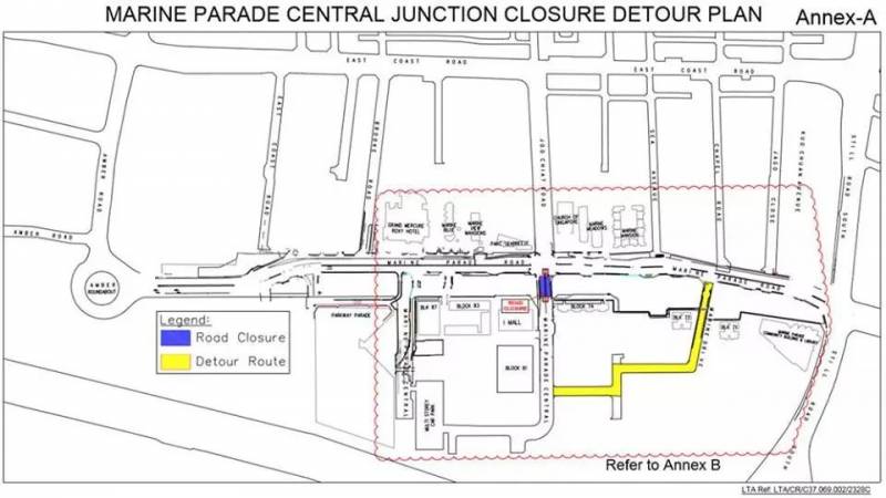 1. 前往马林百列区(Marine Parade Estate)的交通将被转移至马林通道(Marine Drive)