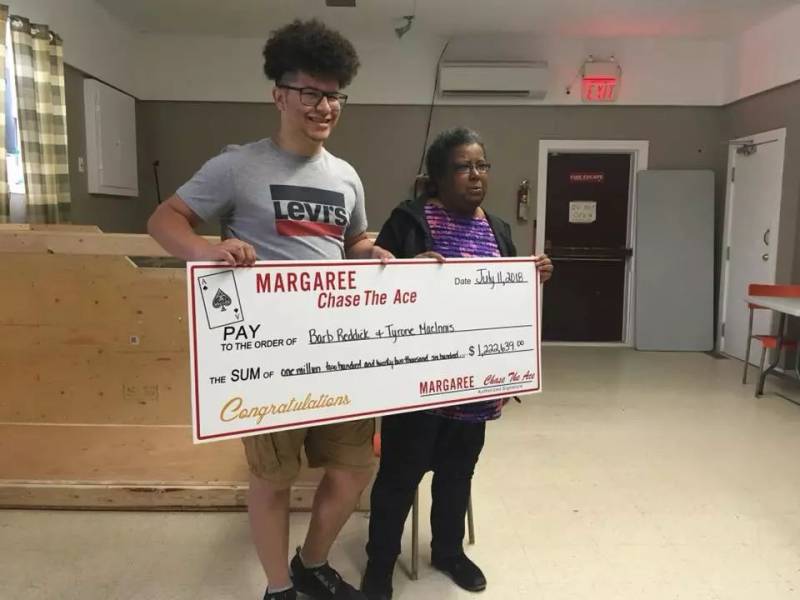 一名居住在加拿大新斯科舍省的妇女Barbara Reddick与19岁的侄子Tyrone MacInnis买彩票Chase the Ace jackpot中了大奖!最后赢得了奖金120万加拿大元(约124万新币)!