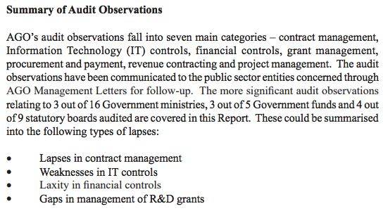 新加坡总审计署(AGO)今早(7月17日)发布了2017/2018财政年的年度报告,重点指出几个政府部门、机构存在合约管理、资讯科技和财务监控、以及研发资金管理等方面的失误!