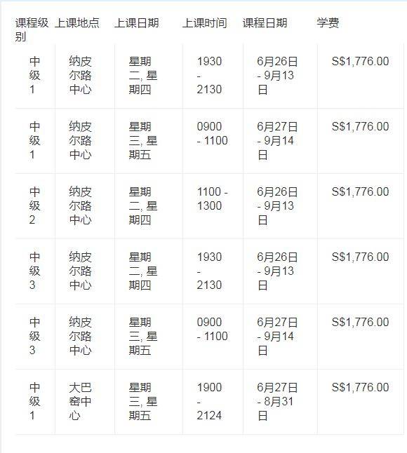 价格:1,776新币/12周,在纳比亚路、大巴窑和马西领中心均可上课