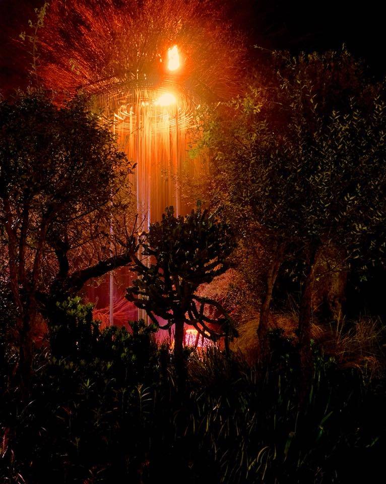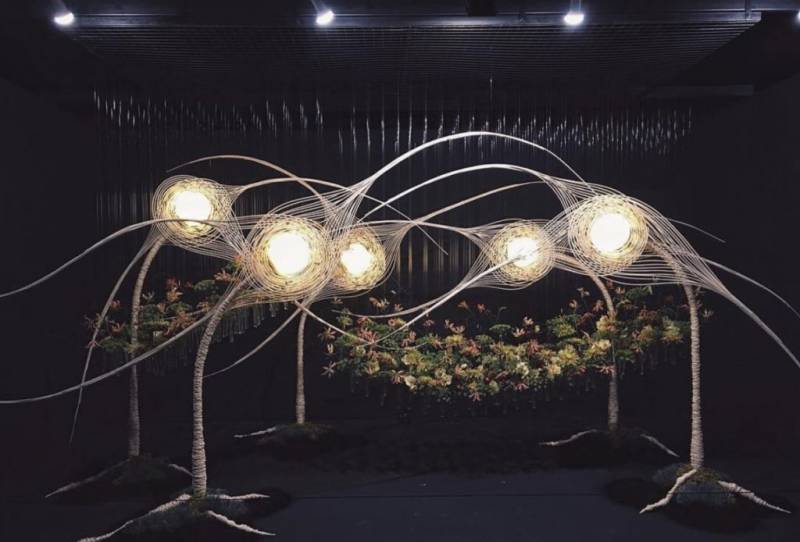 灯光的照射下,让各种设计的花朵,在灯光的效果下,