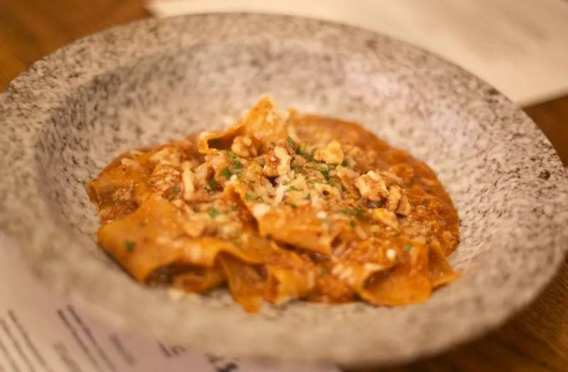 第七道板栗宽面(S$29)配搭的是用意大利传统家常做法经过8个小时烩炖的肉酱,非常嫩。