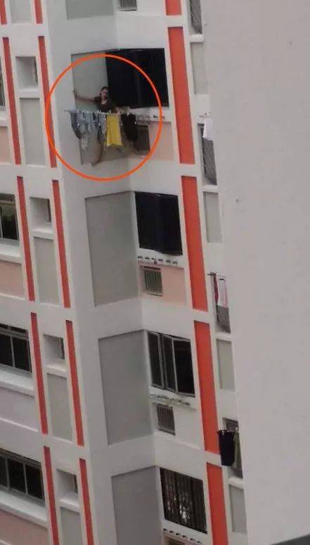 但没过多久,又有一名女佣站在蔡厝港大牌557号组屋8楼的窗台外面,摇摇欲坠!