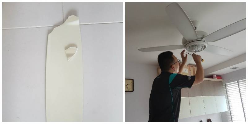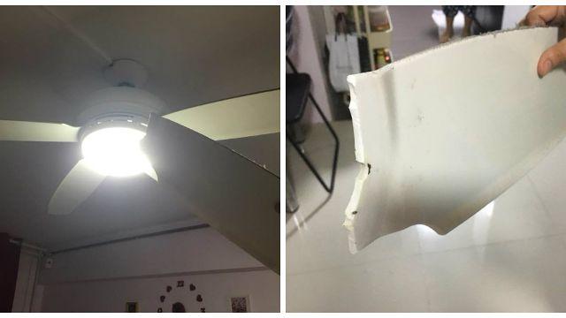 一名母亲申诉,客厅吊扇灯在转动时,扇叶突然飞脱,打到墙壁再掉在餐桌上,坐在餐桌旁的女儿幸好逃过一劫。 她通过社交媒体提醒消费者购买风扇时,要注意产品的质量。
